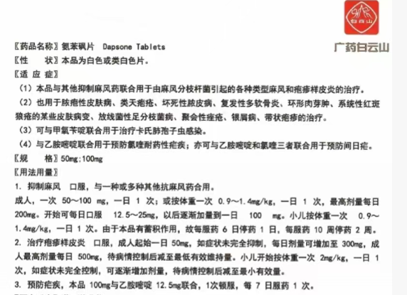 产品特点:氨苯砜片的适应症和疗效如下: 本品与其.