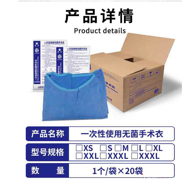 东贝一次性手术衣采用医用级SMMS无纺布、采用纺粘、熔喷技术制造的无纺布为基材,具有高阻隔性、良好的透气性、低落絮、抗酒精、抗静电、抗油污的功能。加强阻液片、弹力袖口,纸塑袋包装,环氧乙烷灭菌等。