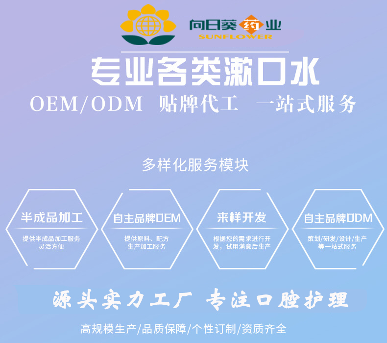 健齿漱口水代加工厂家南京向日葵 漱口水定制 漱口水OEM代工