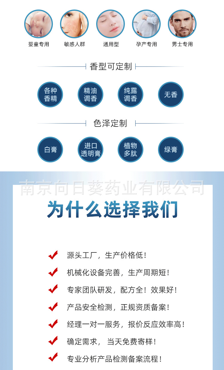 南京向日葵药业公司拥有十万级净化车间,采用医药级原材料,药厂的生产标准,从前期打样,签合同到最后生产、出厂,每个环节都有专人对接,确保生产效率及产品质量,欢迎广大客户朋友们来咨询我们,联系我们随时可以验厂。