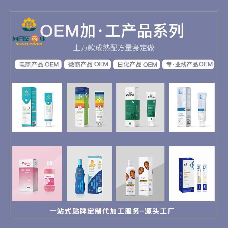 南京向日葵药业专注口腔护理产品,可根据客户要求进行产品开发,10万级GMP车间,口味定制,成熟配方选择,一站式生产代工服务,5000+成熟配方,支持批发-代加工-代理批发采购,免费寄样!