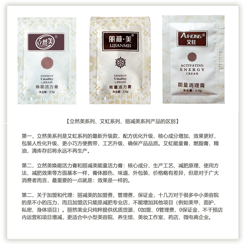 【立然美能量膏系列、艾虹能量膏系列、丽减美能量膏系列产品的区别】(淘宝搜索店铺:丽然美业,或者搜索立然美焕能活力膏、丽然美能量调理膏)
