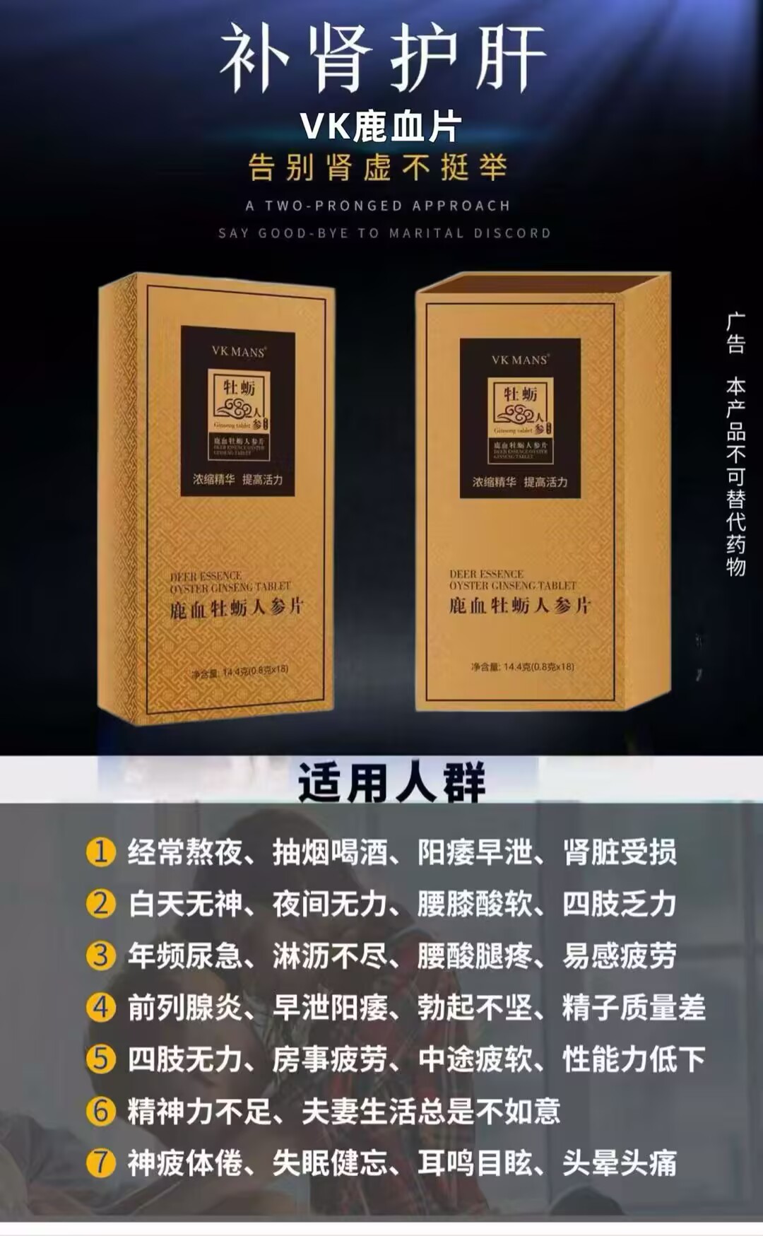 【鹿血牡蛎人参片】适用人群: