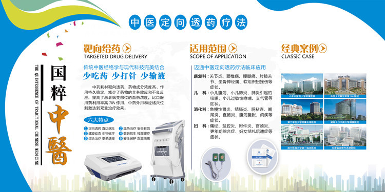 同时,该疗法运用了现代化的电子技术,采用微电流直接导入中药成分到患处,使治疗达到更高效、舒适、无痛苦的状态。这也是中医定向透药绿色疗法与传统中药治疗方法的重要区别。