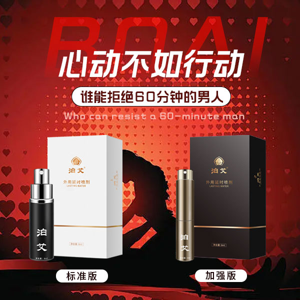 泊艾延时喷剂的作用更是不容小觑。它能有效延长性生活时间,改善性生活质量,让夫妻双方在亲密互动中更加和谐。这种和谐的性生活,不仅能增强夫妻之间的感情,还能提升双方的幸福感和满足感,让亲密关系达到一个全新的境界,为生活带来更多的美好与欢乐。