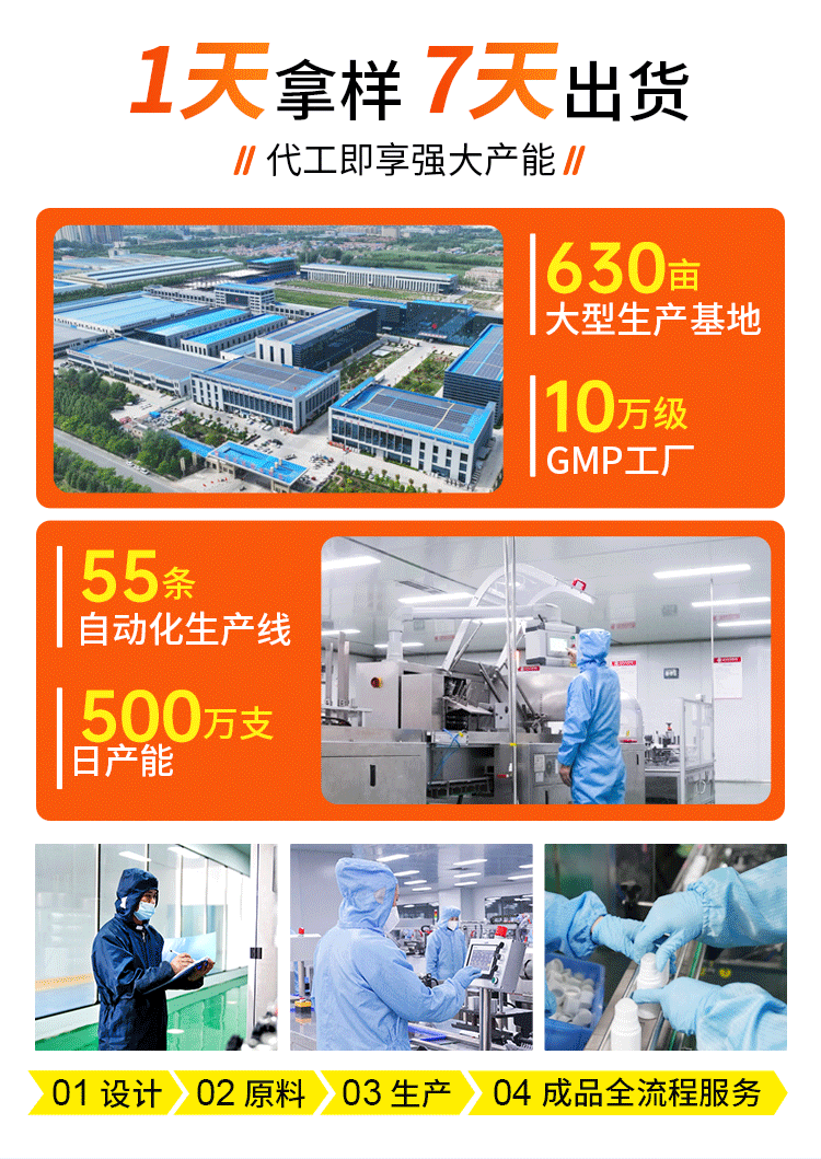 集团拥有42万平方米生产基地、10万级GMP净化车间及50+全自动化生产线,日产能超500万片,可灵活应对“618”“双11”等大促期间的订单暴涨。例如,某新锐电商品牌在双11预售期间通过直播带货实现单日销量突破10万盒,朱氏药业通过7天加急排产服务,确保产品按时交付,避免断货风险。