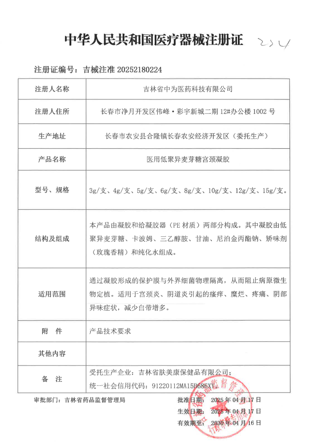 注册证意义:医疗器械注册证是产品合法上市销售的“通行证”,获取该证书意味着产品经过了国家药品监督管理局的严格审查,符合相关法规和标准要求,可以正式进入生产销售环节。对于山东康民药业科技有限公司而言,这将是其在妇科医疗器械领域的一次重要突破。