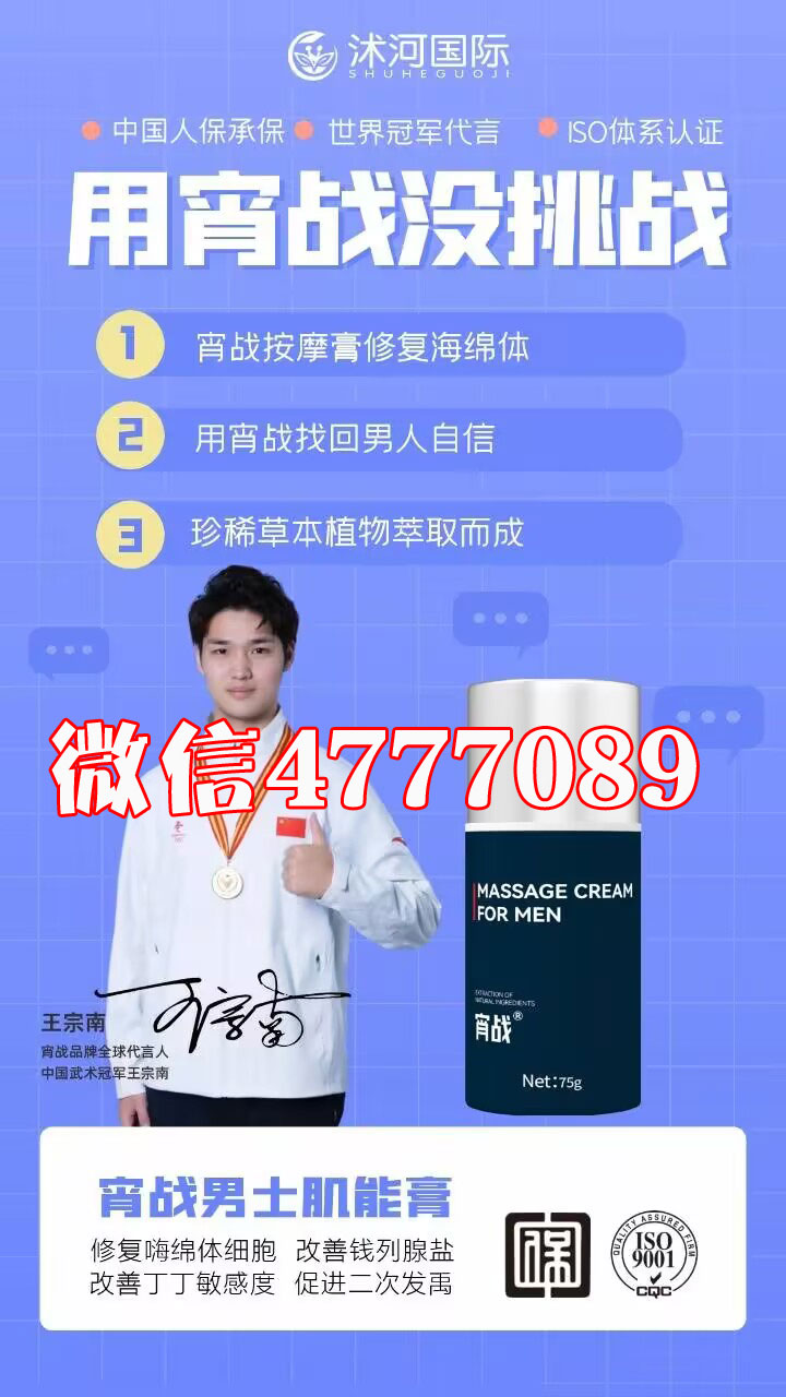 如需咨询订购正品请添加微信aaase9 听健身房的兄弟说宵战按摩膏能改善男性状态,我一开始还不信,觉得健身就能解决所有问题,直到自己试了才知道“术业有专攻”。第一次用的时候,我特意选在健身后洗澡完用,它的质地很清爽,涂在身上不黏腻,按摩的时候还能促进血液循环,感觉很舒服,不像有些产品涂完会有刺痛感。用了一段时间后,我发现自己的勃起速度明显加快,硬度也有所提升,更重要的是,尺寸方面也有了明显的改善,敏感度降低,同房时间延长,这让我的伴侣感到非常惊喜和满意。